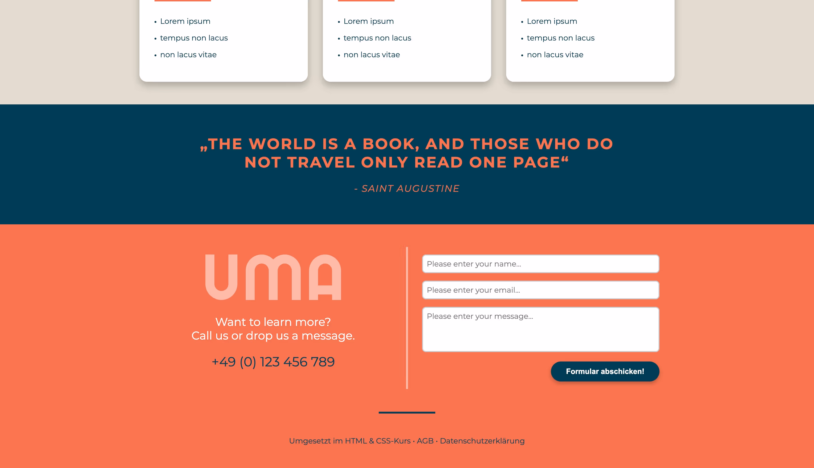 Das Projekt uma-holiday.de ist eine vollständige Beispiel-Webseite aus einem HTML5- und CSS3-Praxiskurs, die den Teilnehmern zeigt, wie moderne, responsive Webseiten aufgebaut werden.